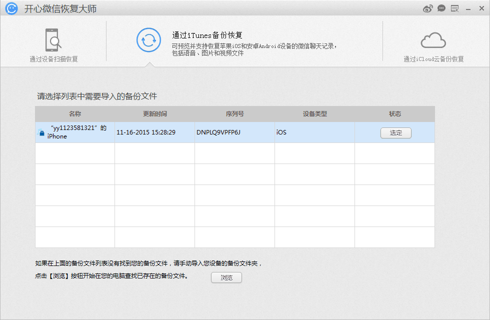 使用開心微信恢復(fù)大師掃描安卓設(shè)備的微信數(shù)據(jù)備份文件