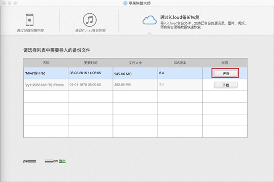 第一步:打開蘋果恢復(fù)大師,首頁界面點擊【通過?iCloud?備份恢復(fù)】。