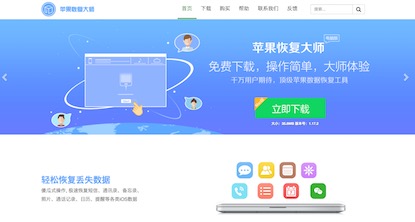 進入蘋果恢復大師網(wǎng)站首頁,點擊【立即下載】(下為 Windows 版, Mac 版步驟相同)下載蘋果恢復大師。如果您在使用蘋果恢復大師的過程中,遇到產(chǎn)品錯誤、崩潰、各種Bug,或者有相關建議,可以直接到產(chǎn)品論壇進行發(fā)帖(點這里),及時的問題反饋和好的建議將會對產(chǎn)品改進有很大的幫助。